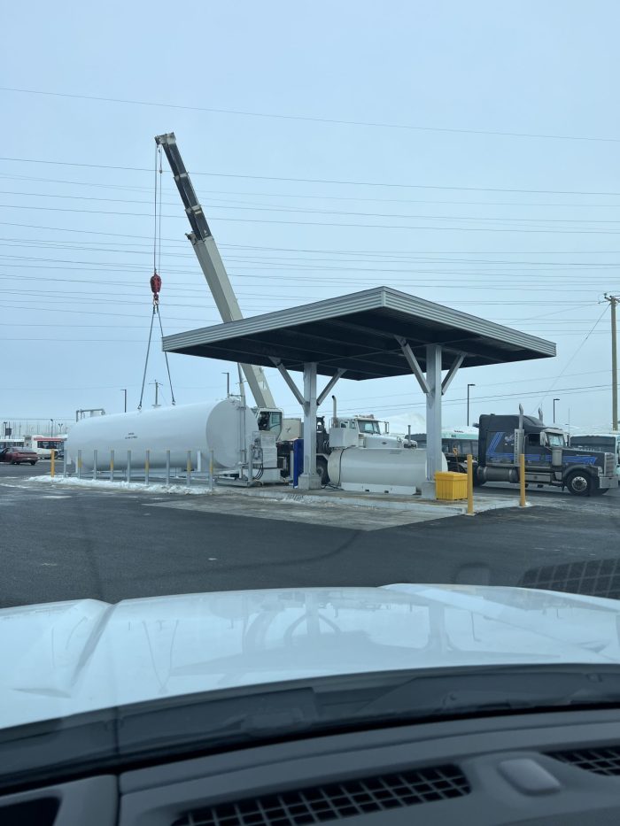 Incluant bureaux administratifs, salle de conférence, salle double de lavage pour autobus, ainsi que 4 portes pour le mécanique, aires de stationnement et de circulation, aménagement paysager, installation d’une marquise pour station d’essence.
