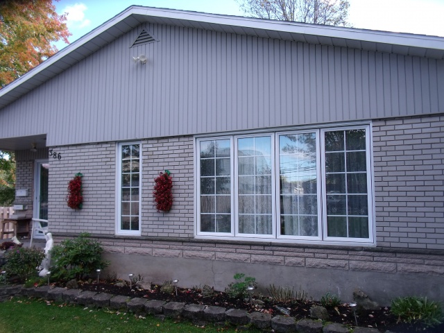 Installation d’une nouvelle pierre décorative et revêtement de bois et porte patio.