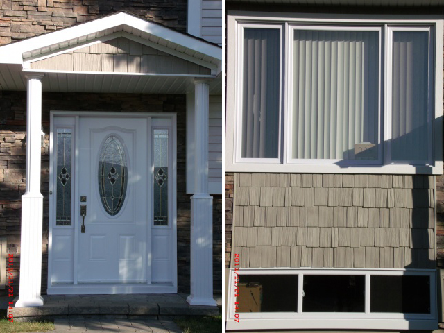 Remplacement du revêtement extérieur et l’ajout d’un toit au dessus de l’entrée.